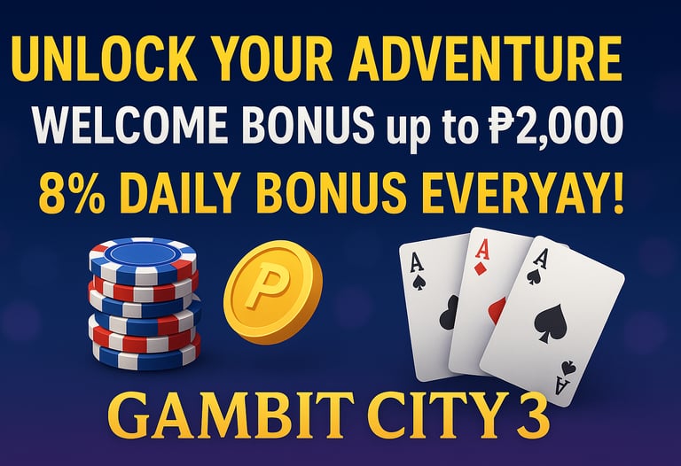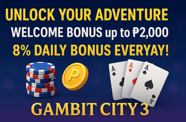 Aug 30, 2025 – Unlock Your Adventure with the WELCOME BONUS up to ₱2,000 and Daily Rewards at GAMBIT CITY 3